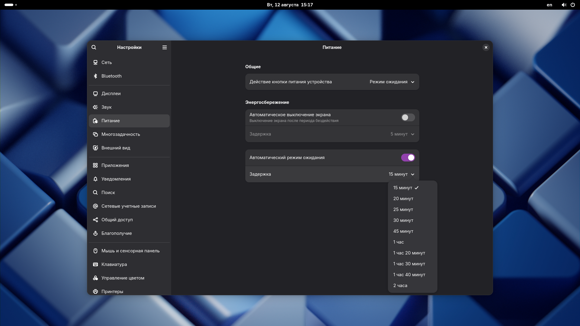 После отключения ждущего режима в системных настройках компьютер всё равно переходит в ждущий режим при бездействии, включая случаи воспроизведения видео в приложении Telegram. Это происходит несмотря на явное отключение функции через графический интерфейс настроек. gnome-shell --version cat /etc/os-release GNOME Shell 47.4 NAME="ALT Workstation" VERSION="11.1" ID=altlinux VERSION_ID=11.1 PRETTY_NAME="ALT Workstation 11.1 (Prometheus)" ANSI_COLOR="1;33" CPE_NAME="cpe:/o:alt:workstation:11.1" BUILD_ID="ALT Workstation 11.0" ALT_BRANCH_ID="p11" HOME_URL="https://basealt.ru/" BUG_REPORT_URL="https://bugs.altlinux.org/" DOCUMENTATION_URL="https://docs.altlinux.org/" SUPPORT_URL="https://support.basealt.ru/" LOGO=alt-distro-logo echo $XDG_SESSION_TYPE wayland Поведение: В системных настройках (графический интерфейс GNOME) ждущий режим был отключен для сценариев работы от сети и от батареи. При бездействии (например, отсутствие ввода с клавиатуры/мыши) или во время воспроизведения видео в Telegram через определённое время (примерно 5–10 минут) появляется уведомление от подсистемы "Питание" о предстоящем переходе в ждущий режим. Если не предпринимать действий, система переходит в ждущий режим, даже если воспроизводится мультимедиа (видео в Telegram). Ожидаемое поведение: После отключения ждущего режима в настройках система не должна показывать уведомления о переходе в ждущий режим и не должна в него переходить, особенно при активном воспроизведении мультимедиа. Временное решение: Проблема была устранена с помощью следующих команд в терминале: gsettings set org.gnome.settings-daemon.plugins.power sleep-inactive-ac-type 'nothing' gsettings set org.gnome.settings-daemon.plugins.power sleep-inactive-battery-type 'nothing' Эти команды полностью отключают ждущий режим для сценариев работы от сети и от батареи соответственно. Шаги для воспроизведения Установите ALT Linux p11 workstation/x86_64/ с окружением рабочего стола GNOME. Откройте системные настройки и в разделе "Питание" отключите ждущий режим (например, установите "Никогда" для таймаута перехода в ждущий режим при бездействии). Откройте приложение Telegram и запустите воспроизведение любого видео. Оставьте систему без ввода с клавиатуры или мыши на 5–10 минут. Наблюдайте появление уведомления о переходе в ждущий режим и последующий переход в него.